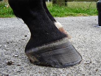 The excess toe has been removed as much as possible and a mustang roll applied according to the thickness of hoof wall. Leverage forces are removed, thus facilitating a tight wall/laminar connection.