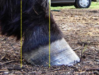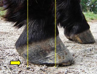 Note the angle of the coronet band - it is almost ground parallel which indicates excessive weight bearing force is centred on the toe area rather than the heel.