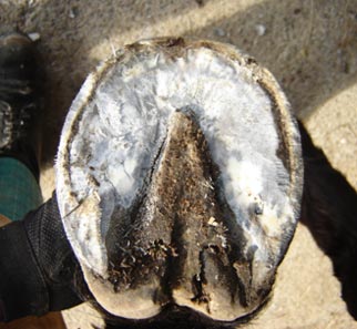 The splits, chips, cracks and breakages have occurred due to a combination of factors - usually poor hoof horn along with either infrequent or incorrect trimming.