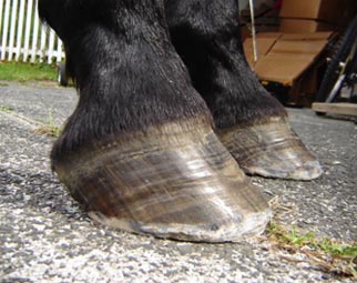Note the angle of the coronet band - it is almost ground parallel which indicates excessive weight bearing force is centred on the toe area rather than the heel.