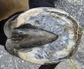 With frequent correct barefoot trimming, along with plenty of exercise on hard, flat surfaces, hoof walls will become thick and healthy.