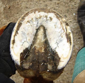 With frequent correct barefoot trimming, along with plenty of exercise on hard, flat surfaces, hoof walls will become thick and healthy.