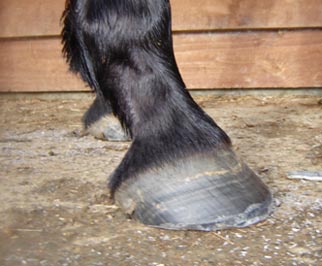 Note the angle of the coronet band - it is almost ground parallel which indicates excessive weight bearing force is centred on the toe area rather than the heel.