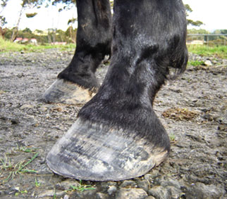 No ground stimulation has contributed to atrophy and contraction of the frog and heel bulbs. The force of impact is diverted to other areas which are not designed as shock absorbing structures.