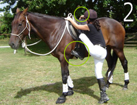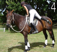 Place your right hand over onto the opposite side of the cantle. This is the back bit of the saddle. Stand facing the same way as your horse, and now slip the ball of your left foot into the stirrup with it pointing towards the horses shoulder. This ensures that you don’t dig the horse in the ribs with your foot as you get up