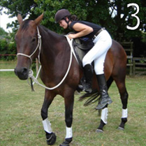 It’s important to place only the ball of your foot into the stirrups, so that if the horse bolts, you can release your foot easily and quickly to jump off if you need to. Also after mounting up, always re check that the girth is still tight, because when the saddle is depressed with the weight of the rider, the girth will become looser. Once you are able to mount up easily, it’s a good idea to practise getting on either side. If you only get on one side all the time, the stirrup on this one side can get stretched more than the other side